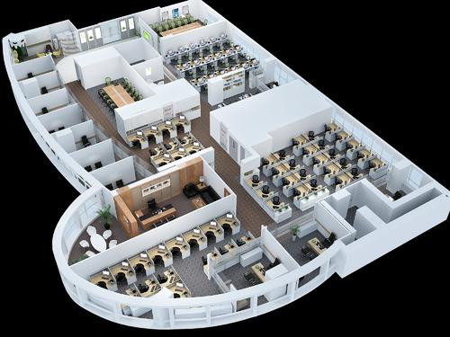 辦公室裝修效果圖是完整的設計圖中不可缺少的。但是由于渲染復雜耗時,并不需要在每個地方都做渲染,通常是在一些關鍵區域。整套辦公室裝修設計圖一般有3-5張,一般是大廳區、走廊區、公共辦公區、總經理辦公室的效果圖等。