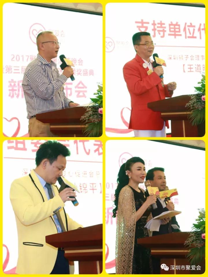 在發(fā)布會上,聚愛會總會常務(wù)副秘書長趙安妮介紹了到場嘉賓;顧問委員會主席張紅象發(fā)布2017聚愛群星演藝晚會暨第三屆聚愛公益慈善頒獎盛典評選標(biāo)準(zhǔn)和策劃亮點(diǎn)及七大獎項(xiàng)設(shè)定:終身成就獎、愛心公益人士特別貢獻(xiàn)獎、慈善人士杰出貢獻(xiàn)獎、愛心機(jī)構(gòu)卓越貢獻(xiàn)獎、愛心企業(yè)突出貢獻(xiàn)獎、聚愛公益慈善傳承獎、聚愛正能量風(fēng)云人物獎,并公開面向社會各界評選、推選各獎項(xiàng)的提名。主辦單位深圳市聚愛促進(jìn)會總會會長陳曉杰動情地介紹了聚愛會成立12年以來的公益慈善愛心歷程,并充分闡述了此次公益慈善頒獎盛典 “聯(lián)益”的重要意義。深圳市慈善會副秘書長董昕、市義工聯(lián)代表汪克非、深圳獅子會理事、分區(qū)主席王道明依次登臺發(fā)言,對歷屆和此次活動表示充分肯定與支持。